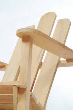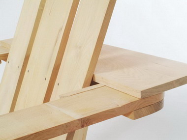 Der dreibeinige Sessel, standsicher, tiefer Schwerpunkt. Gefertigt aus sibirischer Lärche, resistent gegen Witterungseinflüsse. Alle Verbindungen aus Edelstahl A2. Andere Materialien auf Anfrage.